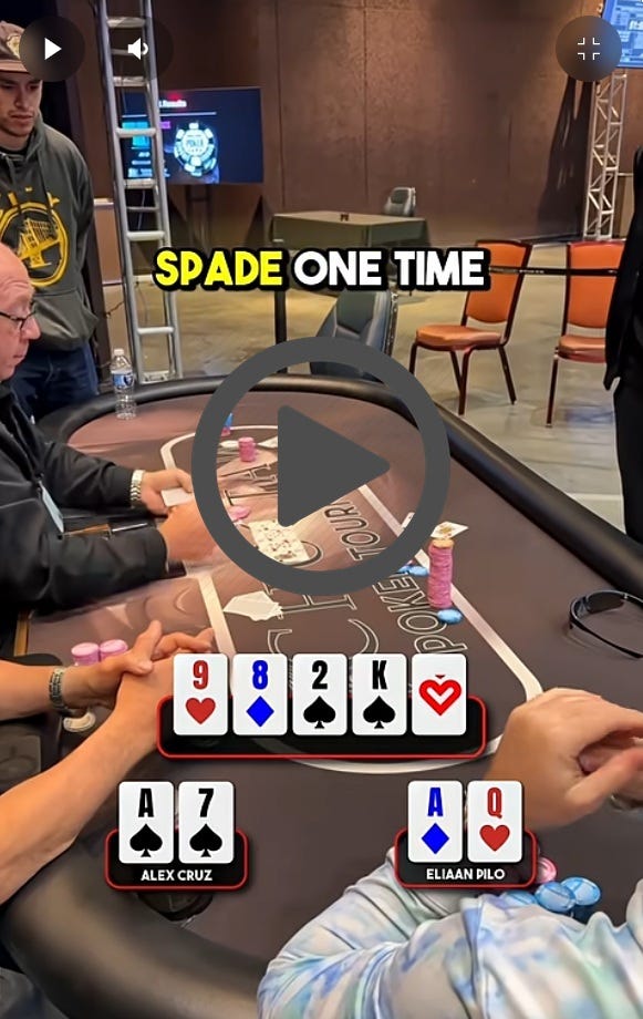 Cruz indeed drilled the needed spade on the river to take down the hand and score a crucial double-up that started his ascent to the title.