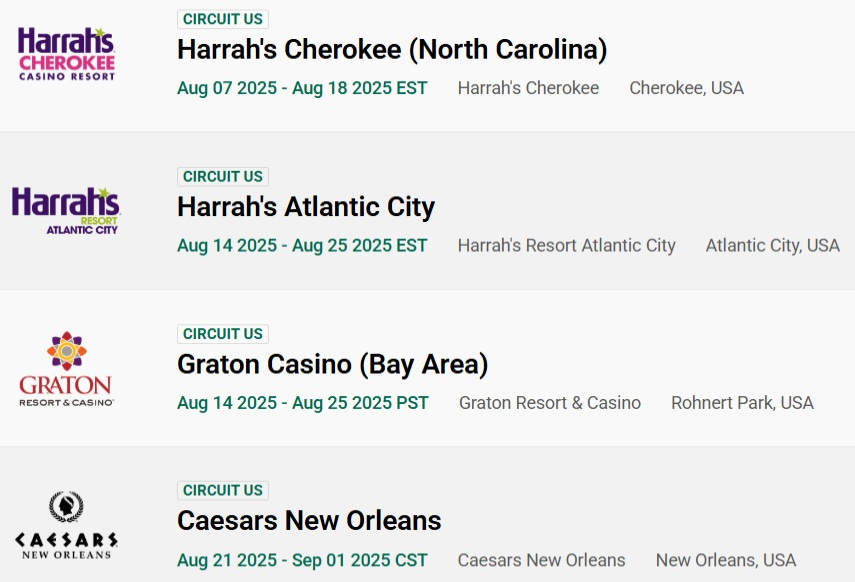 August will see no less than five WSOP Circuit series in North America (including Playground in Montreal between August 18-September 2).